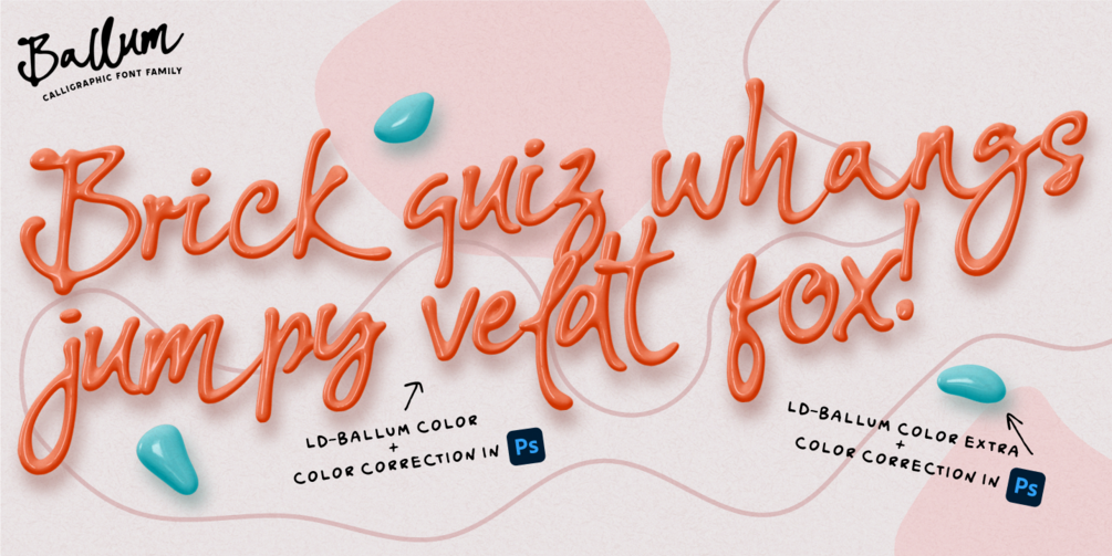 It's not just a typeface, it's a step forward in the visual evolution of text. Get ready for a font revolution with the Ballum OTF SVG script COLOR font family. This is a unique calligraphic color font. Writing immediately with 3D realistic letters is now real. Each letter seems to come to life before your eyes. Your text becomes the main character of the scene. Creating a stunning visual effect. This is your chance to bring to life something that has not yet been on sale.